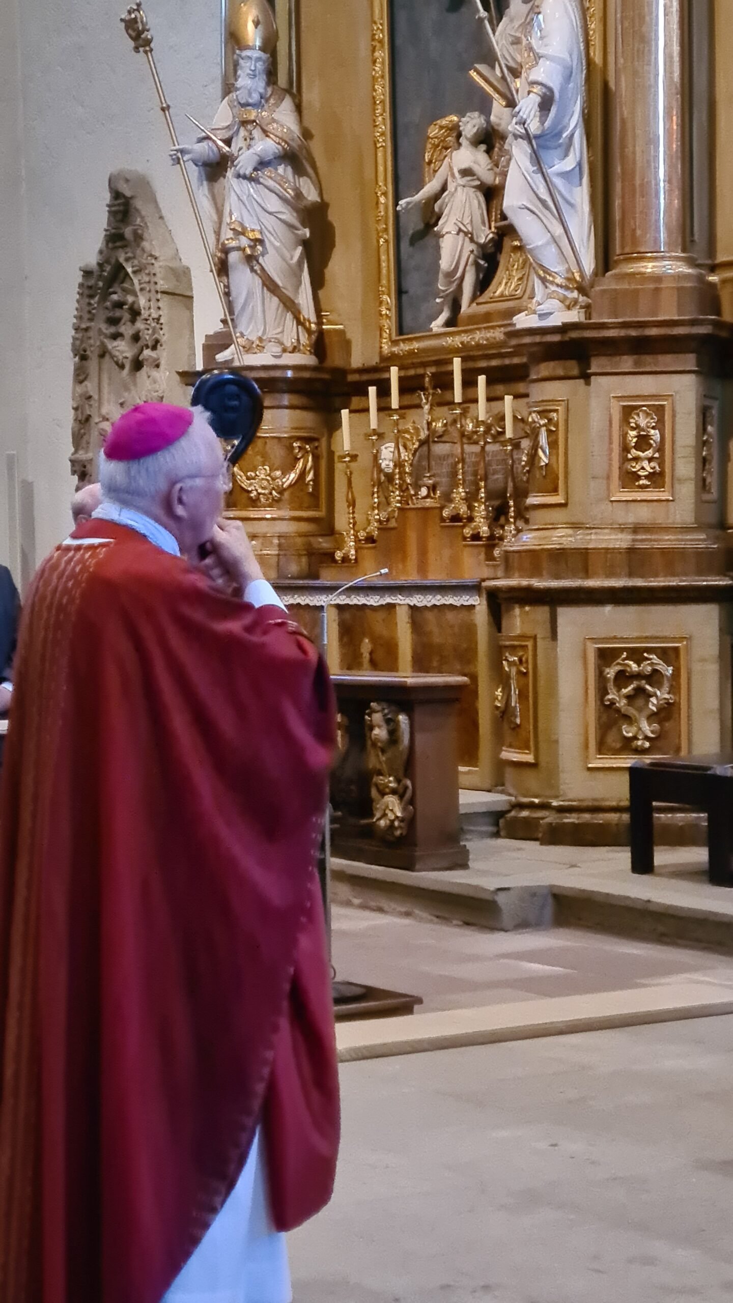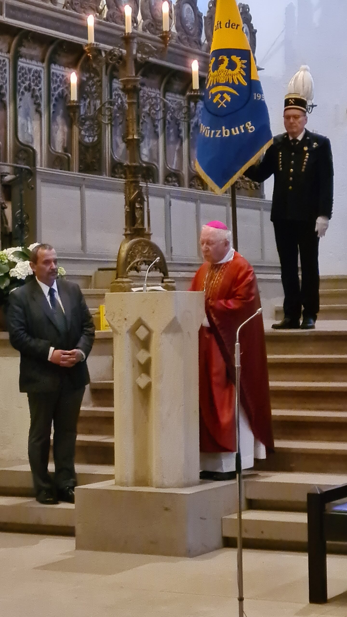 Landsmannschaft der Oberschlesier Kreisgruppe Würzburg bei der traditionellen St.-Nepomuk-Feier in St. Burkard mit Weihbischof Ulrich Boom.
